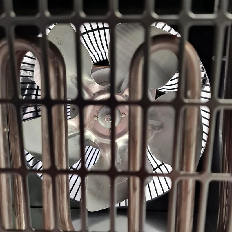 fan plus 1kW power – ideal for smaller spaces, the fan cuts in and out when the heating element turns on and off.