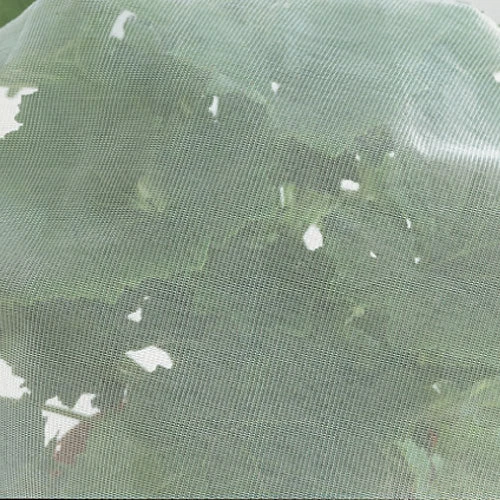 Mesh size 1.35mm, weight approximately 55gms per square metre, being lightweight it will not cause any physical damage to your crops.