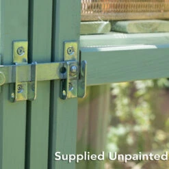 Four Doors – each door is approx. 1ft 1ľin / 35cm wide x 5ft 2˝ in / 159cm high, with an opening width of 1ft 2in / 36cm. These doors can be hung on any of the four sides of the frame, to allow easy access to the full greenhouse. Each door has a metal handle for easy opening and a drop latch to keep the door firmly closed to the frame.