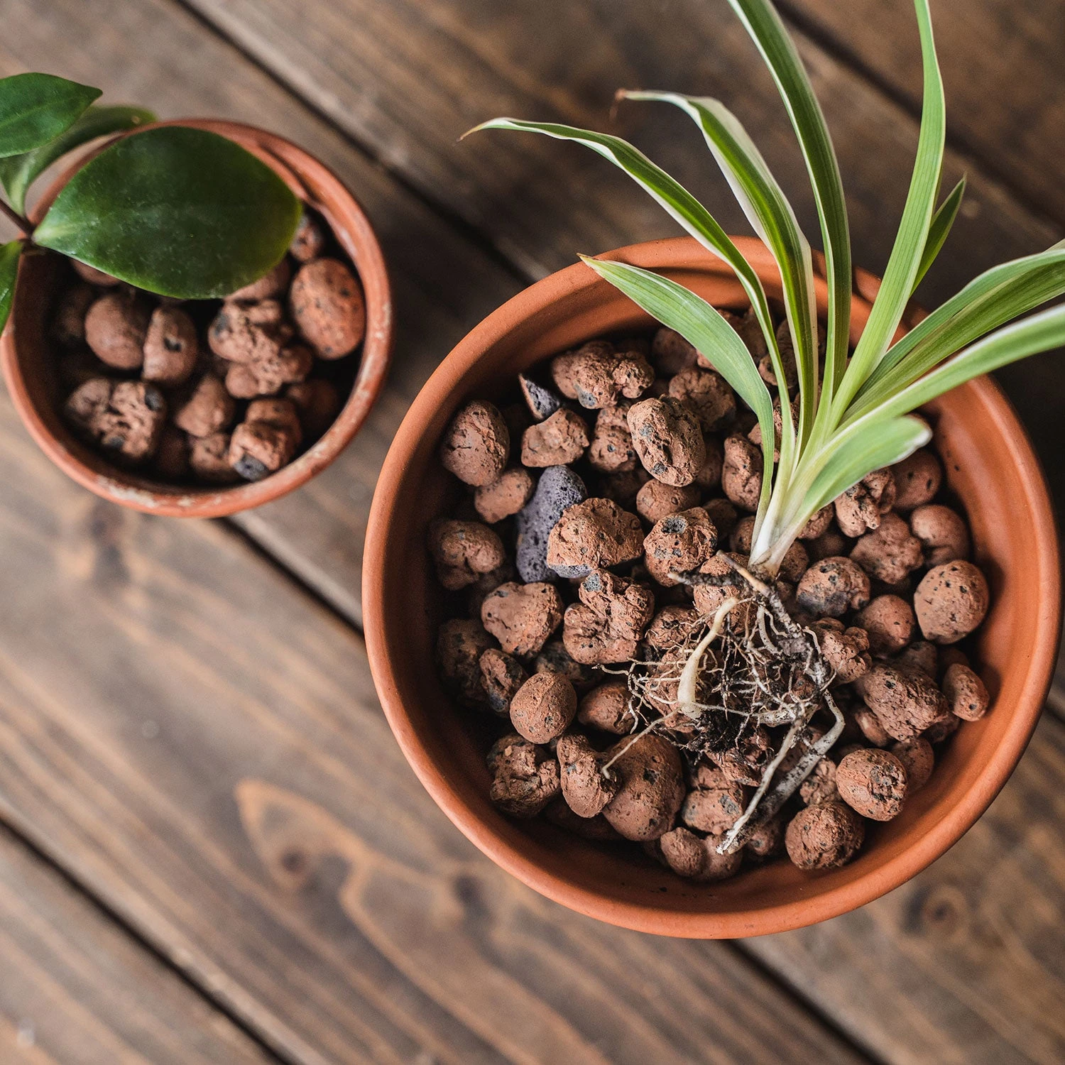 For crocking and potting up – for crocking put a handful of Hydroleca in the bottom of pots and containers as crocks before filling with compost. This will provide good water retention and aeration, improving plant root growth and overall plant health. For lightweight pots and containers add Hydroleca to potting compost in a ratio of one part Hydroleca to three parts compost to grow a wide range of plants, including small trees and shrubs.Â