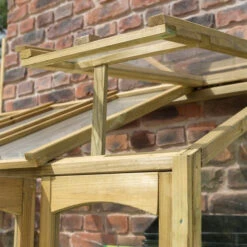 Quick and easy to set up – this greenhouse is supplied with a fixing kit (inc. screws and plugs) to attach the greenhouse to a fence, wall or garden shed and incorporates ground loops to enable you to peg it down. It incorporates a rear ‘windblock panel’. So whilst the maximum height of the greenhouse is 5ft 6in, this panel means you can fix the greenhouse against walls or fences which are as low as 3ft 9in. In addition to the five brass fixing eyelets across the lower edge of the ‘windblock panel’, you can achieve a secure mounting by using as many as possible of the seven eyelets around the edge of the greenhouse.