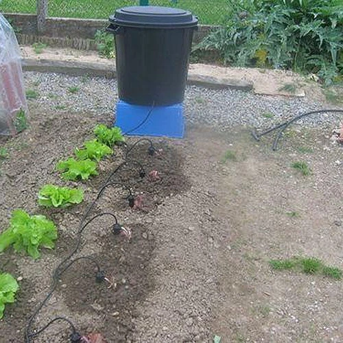 For this system to run efficiently the reservoir of water (a plastic container, waterproof tank or water butt etc) should be at least 50cm higher than the plants being watered.