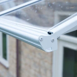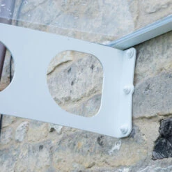 This door canopy is delivered flat packed for self-assembly. It features a screw-free roofing assembly system, specially developed to prevent rain / dew leaks. It comes complete with a wall anchoring kit suitable for attaching the canopy to a concrete or solid brick wall.Â