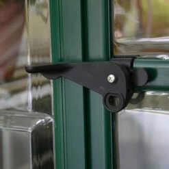 Galvanised Steel Base With Matching Green Finish – this factory-made base will add structural stability to the greenhouse. This base can be anchored to a solid surface (such as concrete) using the pre-drilled holes in the base or it can be fitted to bare earth (fixings not included).
