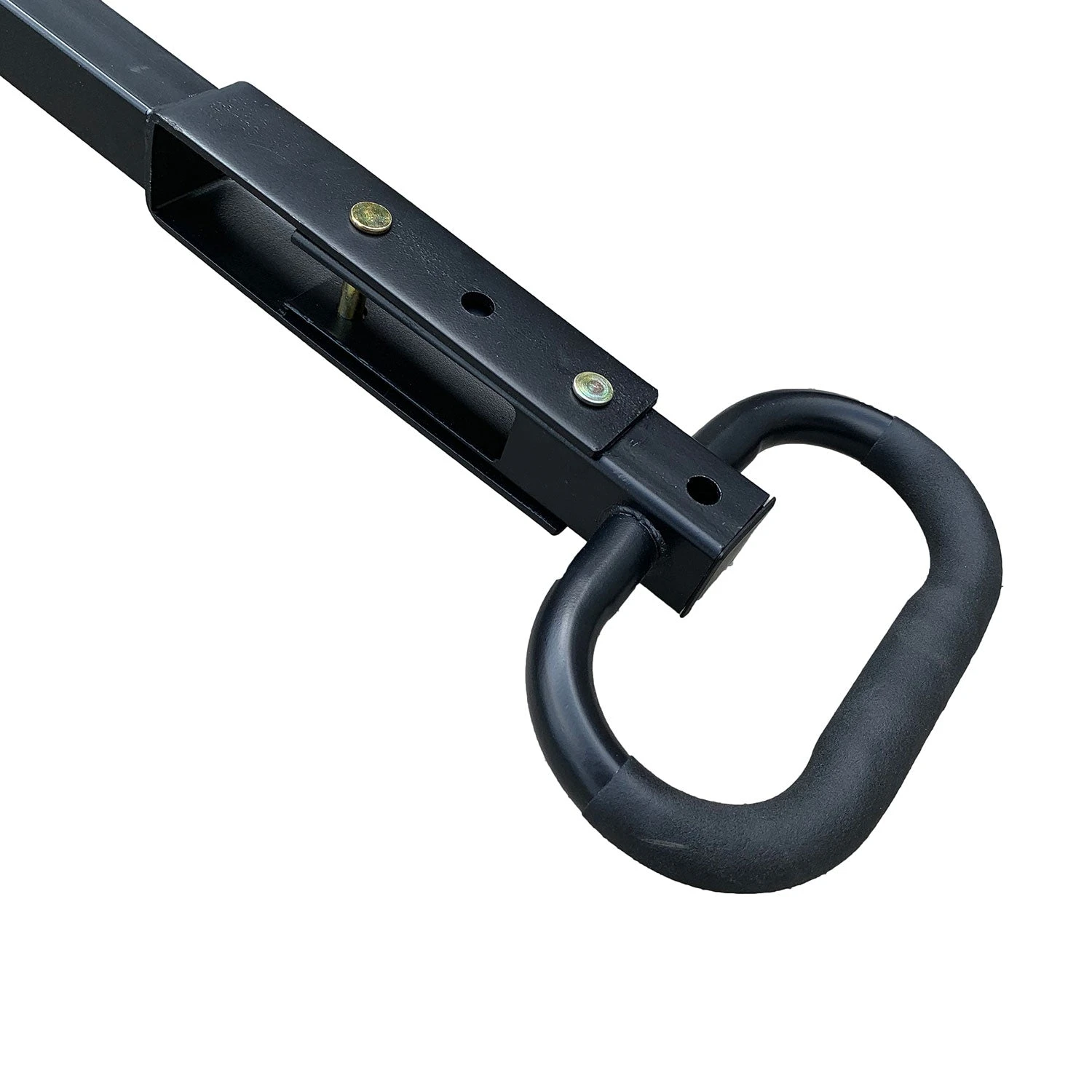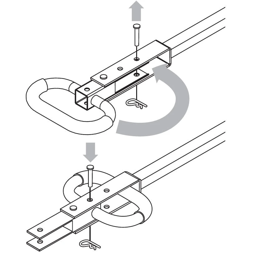 Multi-function handle – allows you to move the cart by hand or attach to an ATV. To make moving by hand comfortable the handle of the cart is ergonomically shaped and has a tough textured rubber coating for great grip in all conditions. To attach to an ATV / quad bike / ride-on lawn mower the handle is easily swivelled. Simple remove the two r-clips and brass pins, swivel the handle round to expose the clevis hitch and slide the pins back in. With the handle and hitch both integrated in one, there are no loose parts to lose if you switch regularly.